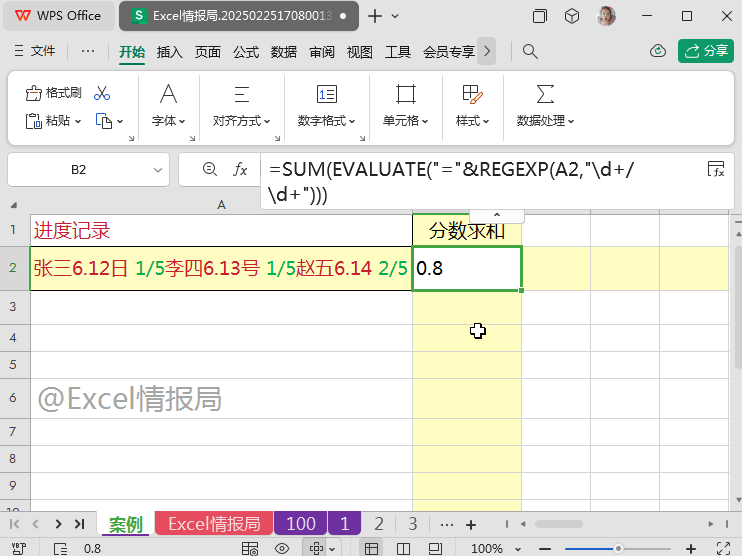 问题看似很简单,实则有一定的难度与忽略点。我们用到的是"="(等于号)+regexp++evaluate+sum公式组合解决这个问题。下面我们看看是如何起作用的。