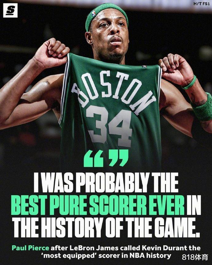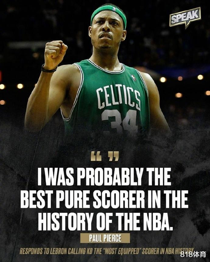 皮尔斯表示:“我才是历史上最纯粹的得分手。杜兰特在进攻端无所不能,而且投篮命中率很高,那很难。他在进攻端能做的事我也都能做到,很可能我能做的更多,因为我是比他更好的背打球员。他的后仰、刺探步很棒,但我的背打要更好。”