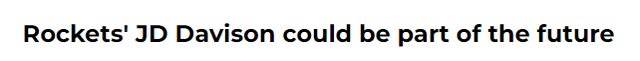 DJ-戴维森当年在绿军时虽然上场机会不多,但他很勤奋,赢得了主教练马祖拉和队友们的认可,还拿到一份正式合同。虽然戴维森最终被绿军裁掉,但是他仍然吸引了一些球队的兴趣。在48小时澄清期过后,火箭第一时间出手把他签下来。