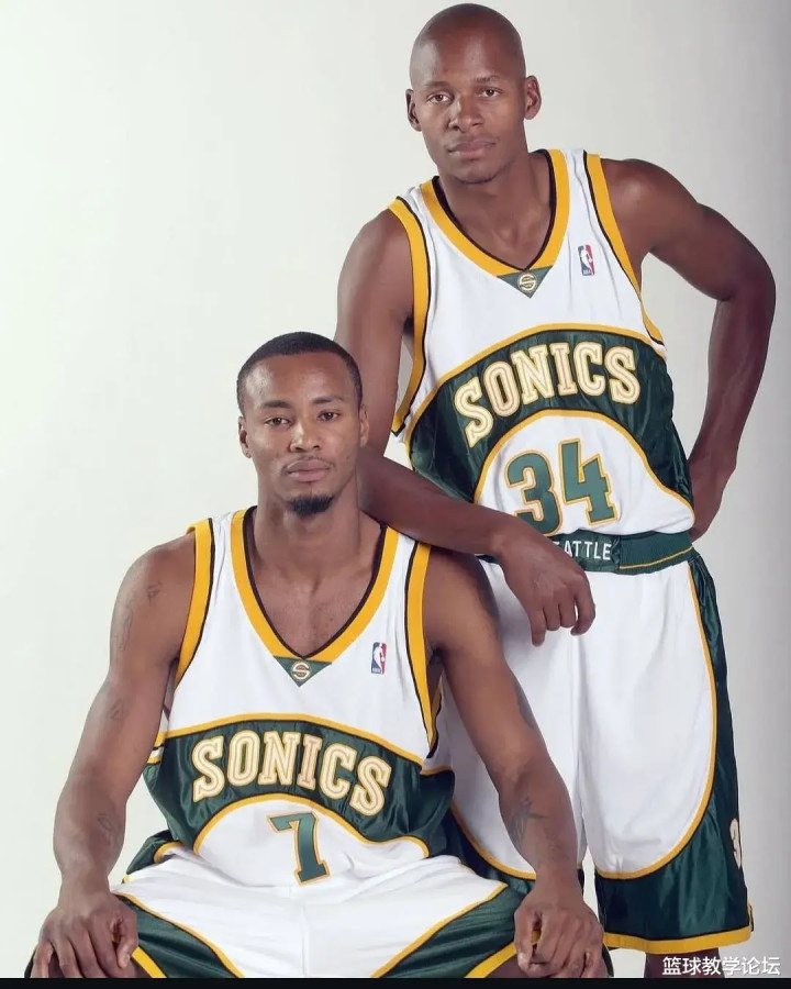 2006-07赛季,雷阿伦场均26.4分4.5篮板4.1助攻1.5抢断,刘易斯场均22.4分6.6篮板2.4助攻1.1抢断。他俩场均得分都是个人生涯最高,但超音速31胜51负仅排西部倒数第二。球队决定重建,2007年夏天把雷阿伦交易到凯尔特人。