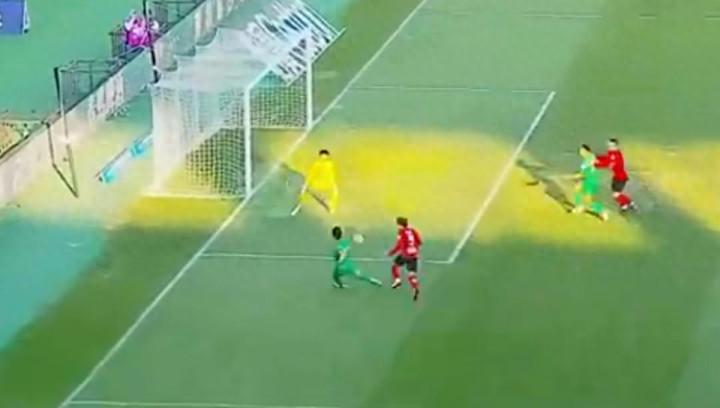 比赛的第58分钟,林良铭突入禁区横传,球被韩镕泽封出,张稀哲右路得球横传,曹永竞头球冲顶破门。在球越过门线之前,主裁判就鸣哨判罚犯规,进球无效。