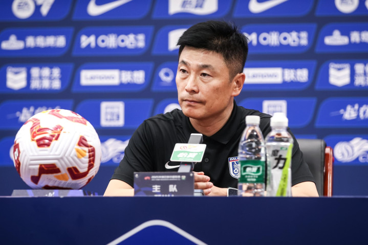 虎扑09月25日讯中超联赛第26轮,大连英博客战北京国安,赛前新闻发布会大连英博主教练李国旭携队员毛伟杰出席。