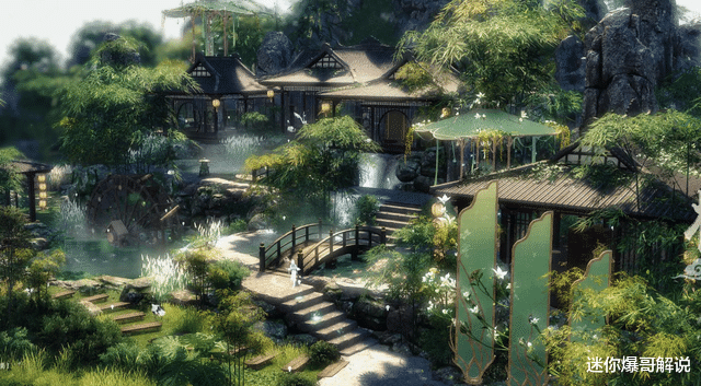 最被推崇的一款千元庄园还火出了圈,中式建筑拿捏清冷感,白紫粉的配色又很梦幻。